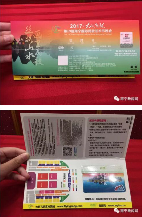 2017年南寧國際民歌節廣州市浦芯電子科技有限公司制作的集交通、雙防偽功能為一體的晚會門票除了觀看唯美演出還可以在北京、上海、深圳、重慶、成都、南京、昆明、南寧等全國165個城市乘坐地鐵和公交車,票務系統與交通部交通大數據成功對接,廣州市浦芯電子科技有限公司在門票制作方面又開啟新篇章!