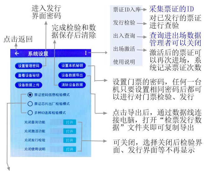 主要對票證芯片有效性的檢驗,作為芯片門票出廠檢驗,用戶也可作為外場票證入場的初次驗證,入場內再選密碼認證